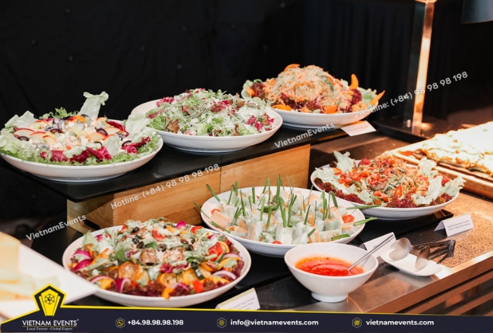 In the world of events, cuisine is a pivotal element that determines the success and lasting impression of every gathering. A perfectly prepared and served meal not only delights the palates of guests but also serves as an emotional bridge, reflecting the class and meticulousness of the organizing entity. VietnamEvents is proud to offer leading reputable event catering services in Vietnam. Learn more about our services in the following article.